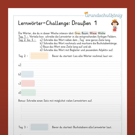 7-Tage-Challenge Lernwörter "Draußen" (Deutsch, 2. Klasse)