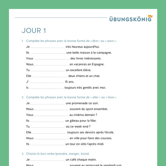 7-Tage-Challenge "Verben" für Französisch im 1. Lernjahr - mit 2 Tests