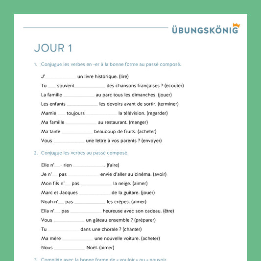 7-Tage-Challenge "Verben" für Französisch im 2. Lernjahr - mit 3 Tests