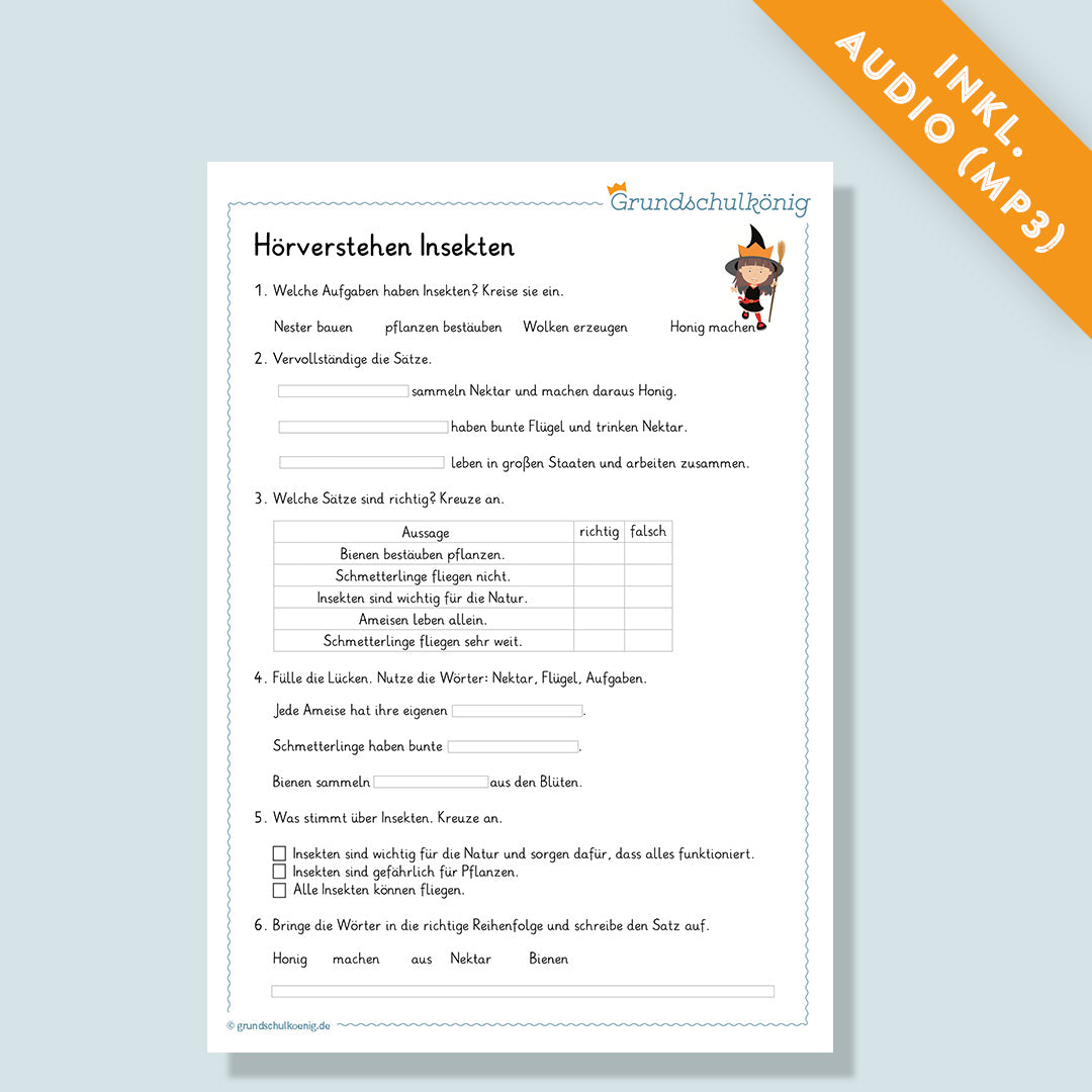 Hörverstehen "Insekten" inkl. Audio (Deutsch, 3. Klasse)