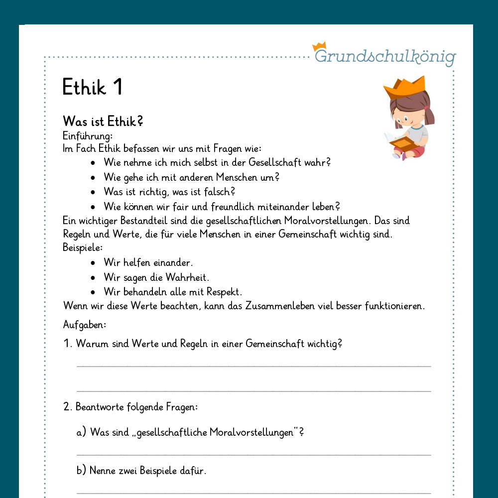 Alle Arbeitsblätter für das Fach Ethik für die 3. & 4. Klasse zum einfachen Herunterladen und Ausdrucken als PDF.
