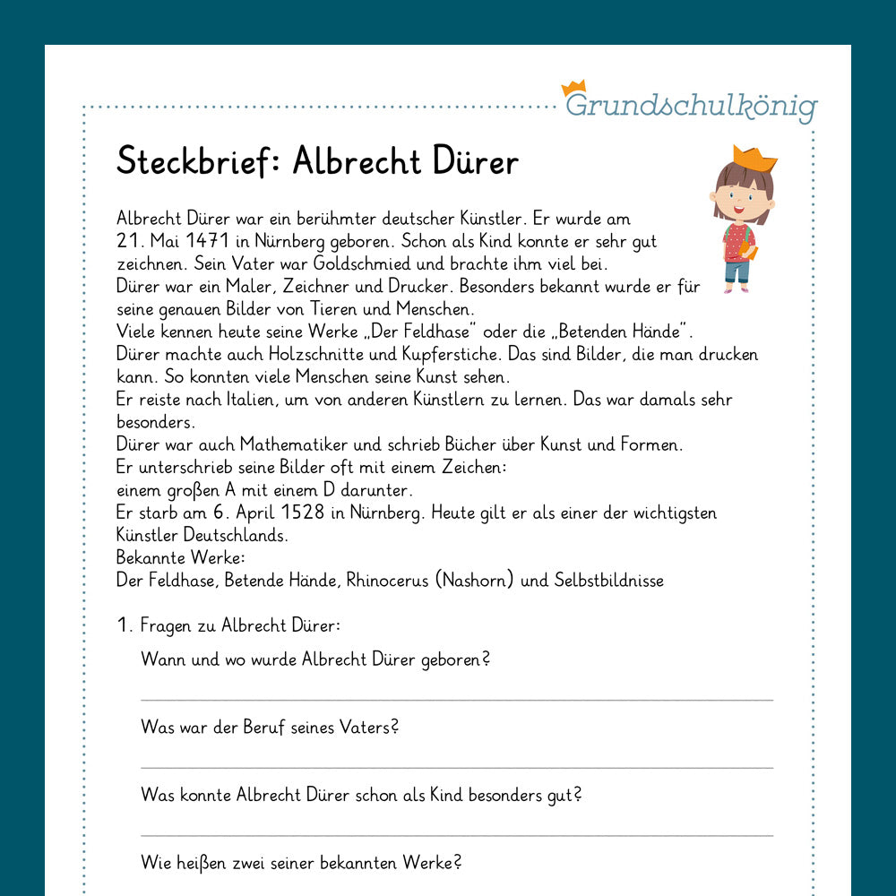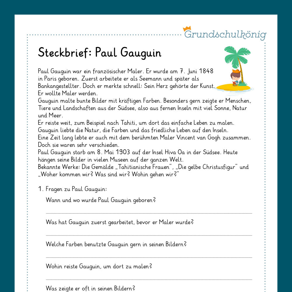 Erster Teil der Arbeitsblätter zum Thema "Berühmte Künstler" für das Fach Kunst zum einfachen Herunterladen und Ausdrucken als PDF.