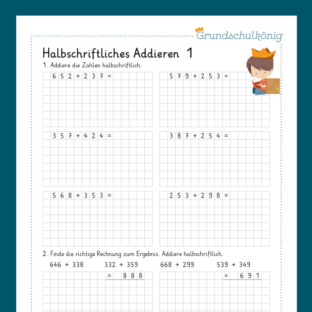 Alle Arbeitsblätter vom Grundschulkönig zum Thema Halbschriftliches Addieren zum gesamten Download als ein PDF.