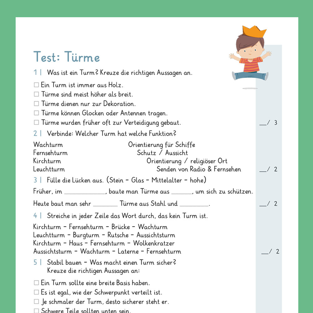 Alle Arbeitsblätter zum Thema "Türme" für das Fach Sachkunde zum einfachen Herunterladen und Ausdrucken als PDF.