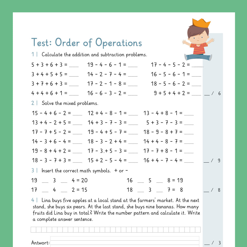 Discover the complete set of worksheets from the EduKing on "Order of Operations" available as a single PDF download. Perfect for strengthening foundational math skills in 1st grade.